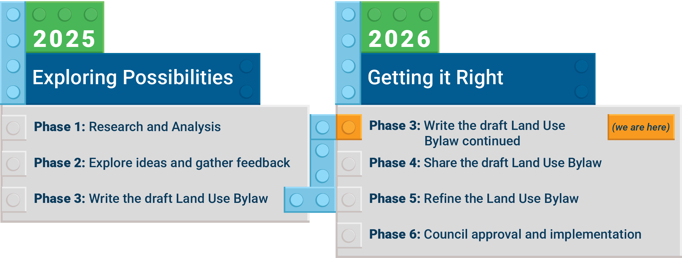 Through the summer and fall of 2025, the project focused on exploring possibilities for a renewed Land Use Bylaw by listening to residents, landowners, developers, business and non-profit organizations. We listened during walking tours, at drop-in sessions and through an online survey about what should guide the next version of the bylaw. We asked what matters and what helps or hinders the way they live, work, and move through Leduc.